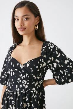 Dorothy Perkins Petite Mono Ditsy Shirred Cuff Long Sleeve Top