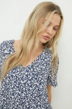 Dorothy Perkins Petite Navy Ditsy Ruffle Short Sleeve Blouse