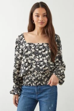Dorothy Perkins Petite Shirred Hem Wrap Over Angel Sleeve Top