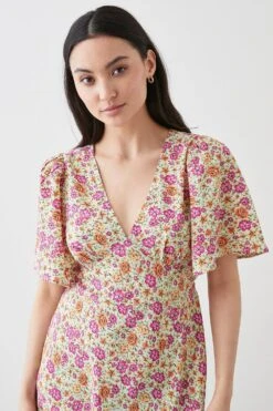 Dorothy Perkins Petite Pink Ditsy Cold Shoulder V Neck Blouse
