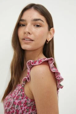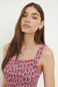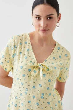 Dorothy Perkins Petite Yellow Ditsy Print Shirred Sweetheart Top