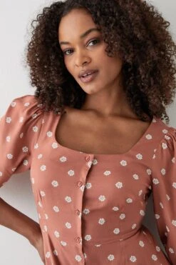 Dorothy Perkins Petite Yellow Ditsy Crinkle Square Neck Blouse